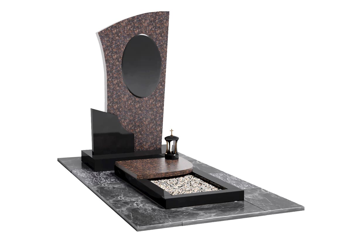 Ключевой элемент — стела Тумба, цветник или надгробная плита Портрет — гравировка, стекло, керамика Облицовка из натурального камня Цоколь и ограждение из гранита Столики и скамейки Вазы и лампадки из натурального камня Скульптуры и бронзовые элементы